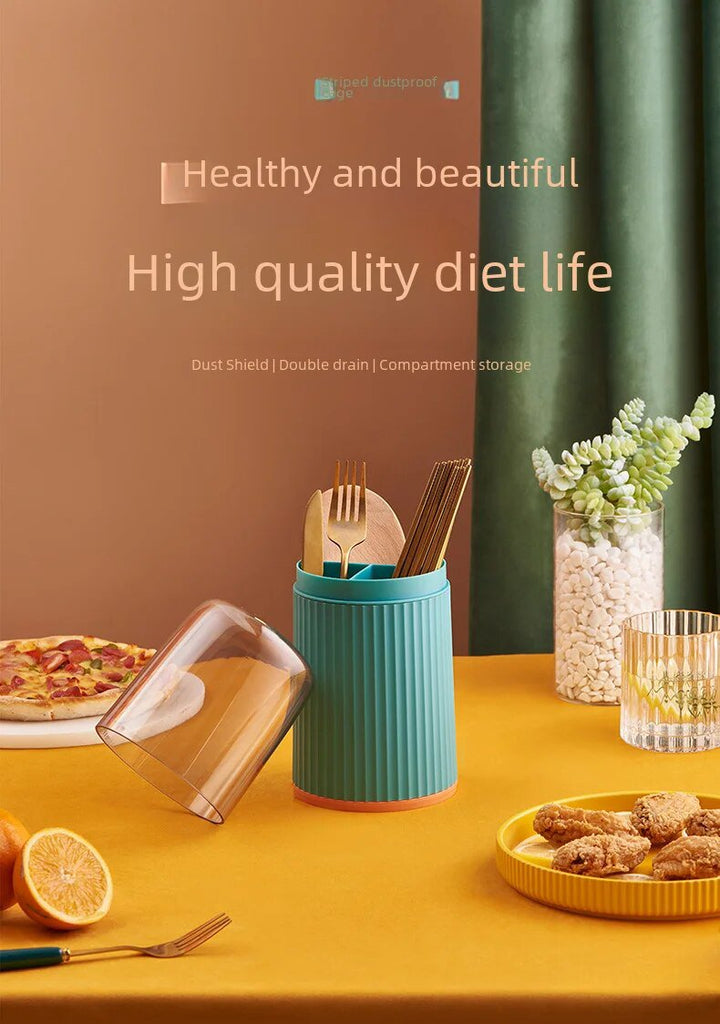 Lid Standing Chopsticks Drain Plastic Storage Kitchen Accessories Tableware Spoon Rack Holder 3-grid With Drying Container