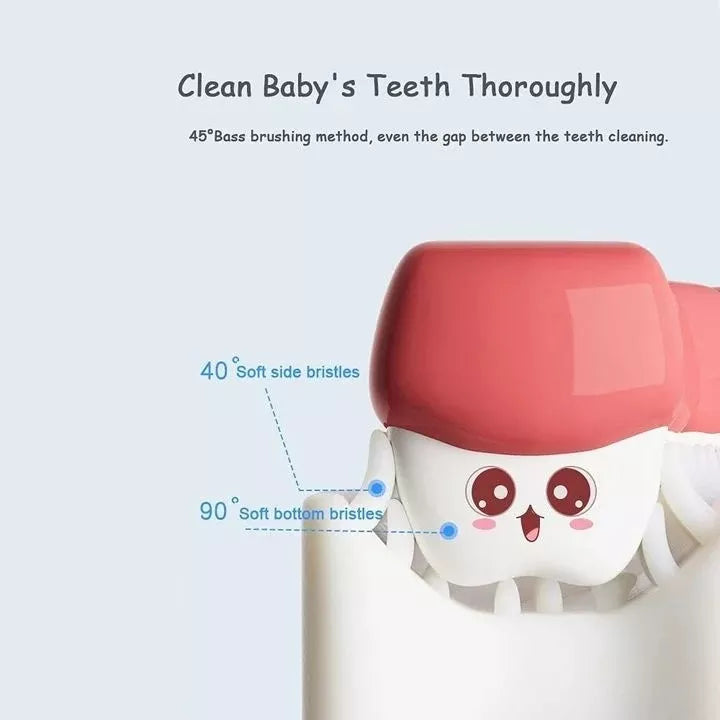 Dentist-recommended, unique brush head cleans all sides of the tooth all at once while developing good brushing habits and reducing the occurrence of tooth decay. Soft, rounded bristles are gentle on your little one's teeth and gums.