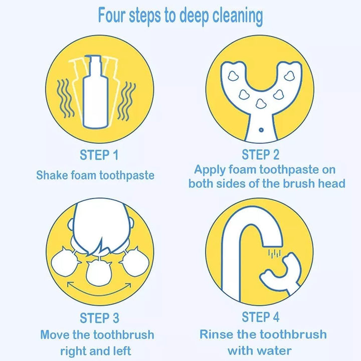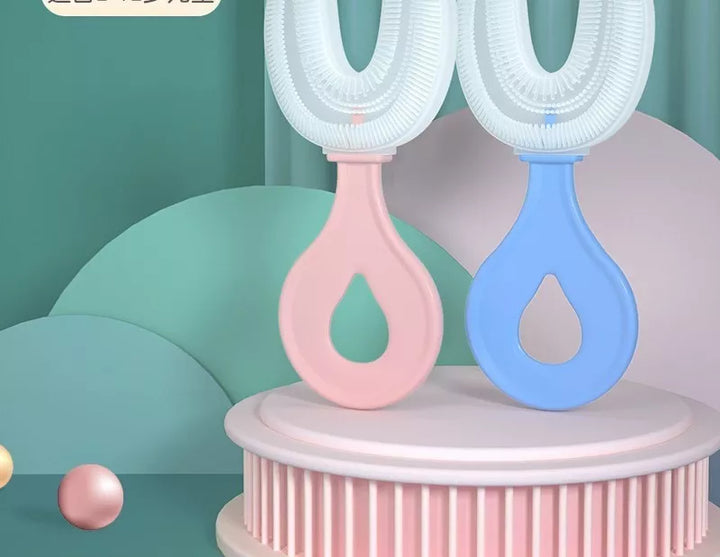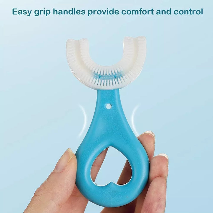 - 【CREATIVE U-SHAPED DESIGN】 Ergonomic U-shaped brush head, suitable for the shape and mechanics of children's teeth structure. uniquely designed for children's tender gums and sensitive teeth.