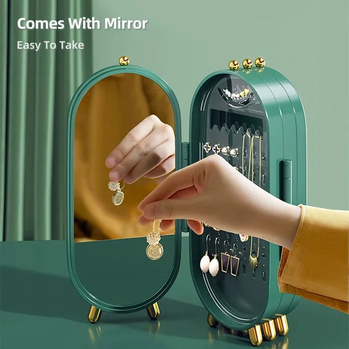 Get ready for your day with this built-in mirror. Jewelry display rack, It fixes your ring in a separate space without crushing any earrings!