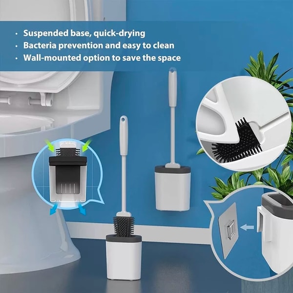 - Toilet brush set: Silicone toilet brushes made of high quality ABS + silicone brush head, The anti-adhesive coating, no dirt can attach to the bristles and thus ensures a germ-free zone.